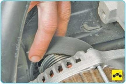 1. ΠΠΎΠΌΠ΅ΡΡΠΈΡΠ΅ Π°Π²ΡΠΎΠΌΠΎΠ±ΠΈΠ»Ρ Π½Π° ΠΏΠΎΠ΄ΡΠ΅ΠΌΠ½ΠΈΠΊ, ΡΠ½ΠΈΠΌΠΈΡΠ΅ ΠΏΡΠ°Π²ΠΎΠ΅ ΠΏΠ΅ΡΠ΅Π΄Π½Π΅Π΅ ΠΊΠΎΠ»Π΅ΡΠΎ.